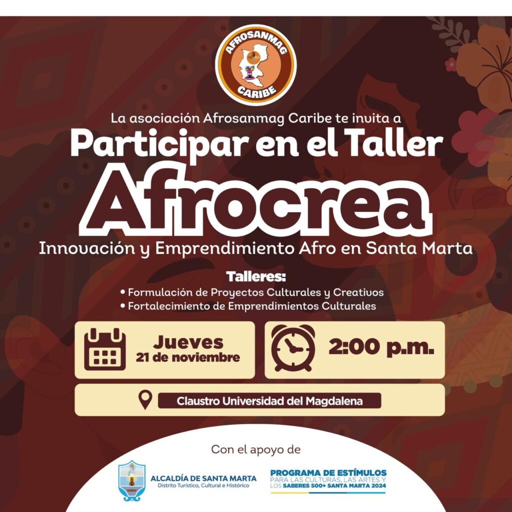 Afrocrea es una iniciativa de la Asociación AFROSANMAG-CARIBE que impulsa la creatividad, la innovación y el emprendimiento afro como motores de transformación social y cultural en Santa Marta.